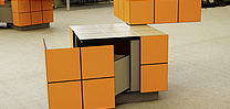 Sonuç, genişleyebilen ve geniş çekmecesi bulunan çok fonksiyonlu, küp şeklinde bir oturma odası parçası olan QUADRANT_21 'dir. Ürünün tamamı SWISS CDF panellerden yapılmıştır. Bu malzemenin neredeyse sınırsız fırsatlar sunduğunu ispatlayan bir projedir.