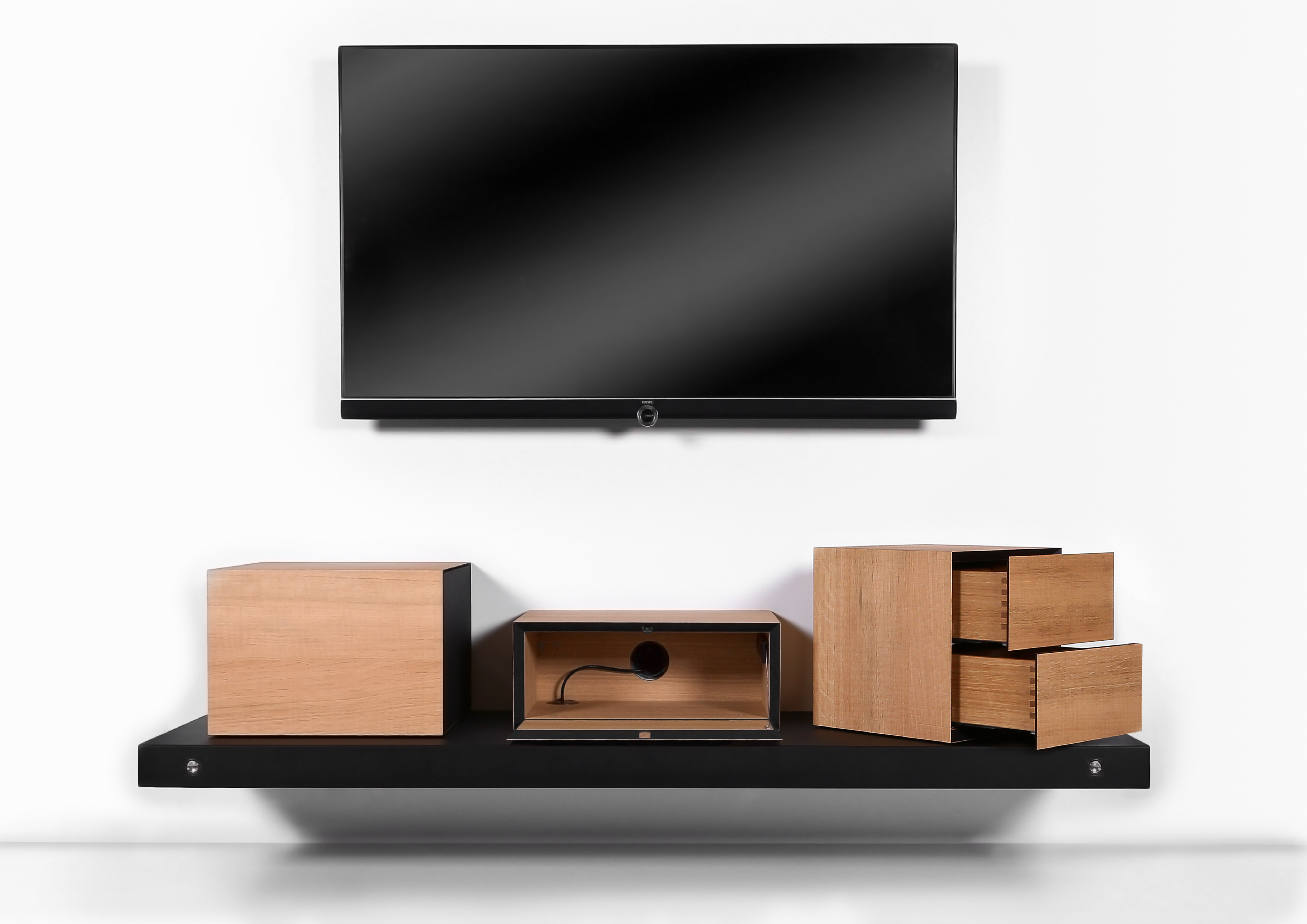 For his final thesis at the Staatliche Meisterschule für das Schreinerhandwerk in Ebern (Germany), master joiner Michael Reuther created a modern and functional multimedia TV cabinet using SWISSCDF.