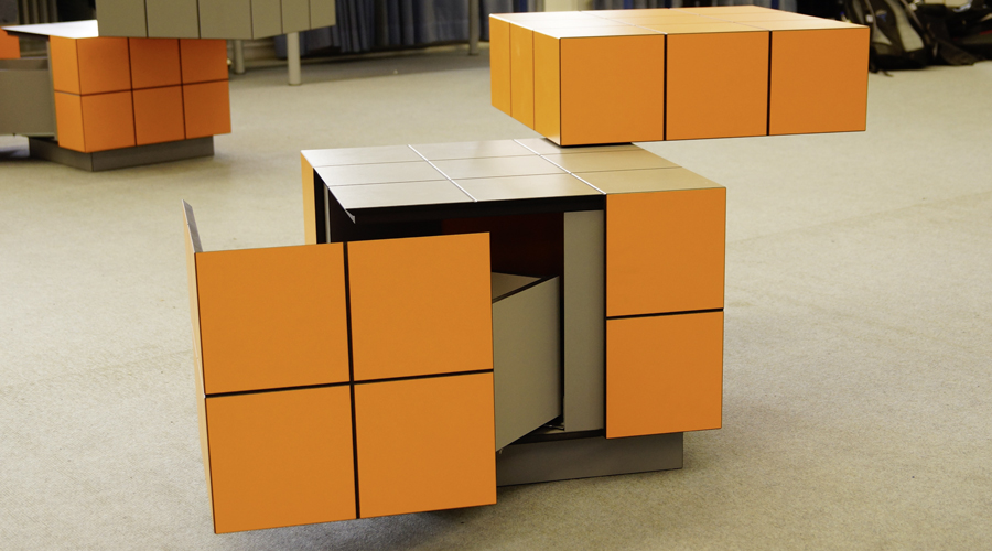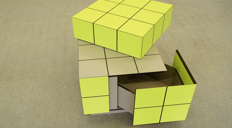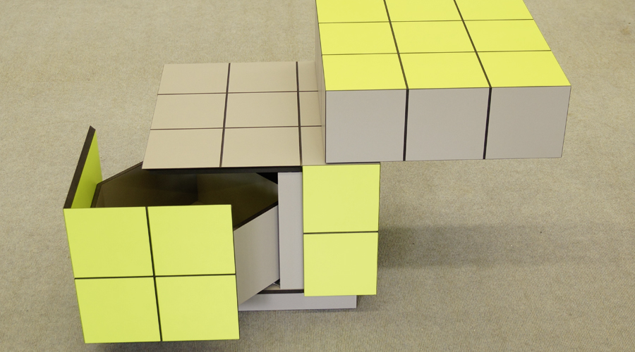 The result is Quadrant-21, a multifunctional cube-shaped sitting room table, extensible and provided with a spacious pull-out drawer. The product is entirely made of SWISSCDF panels, proving that this material offers virtually unlimited opportunities.